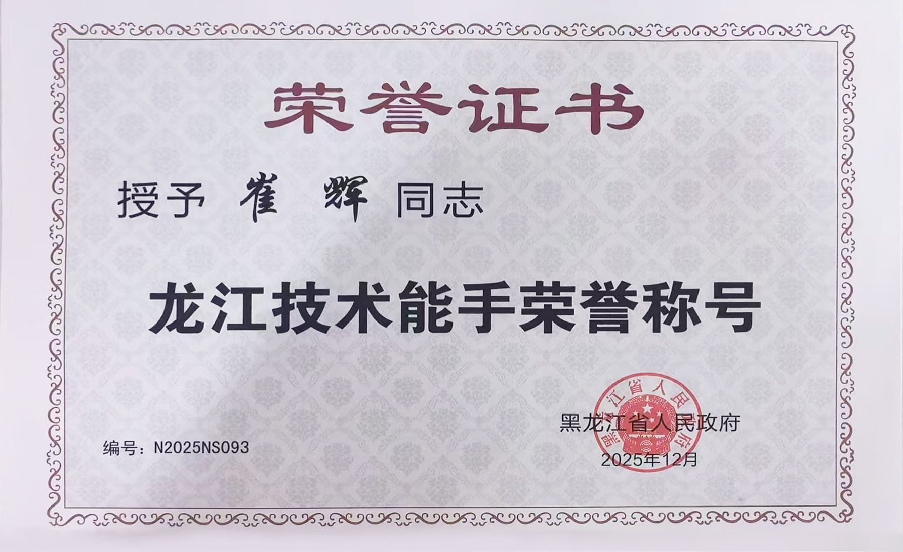 万象城教师崔辉荣获“龙江技术能手”荣誉称号
