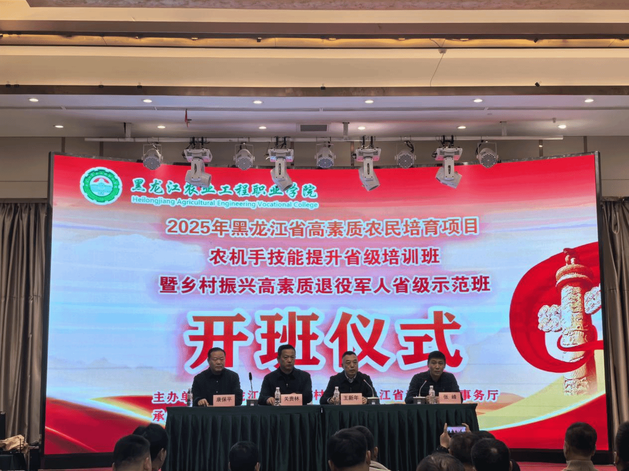 11月28日,由黑龙江省农业农村厅和黑龙江省退役军人事务厅主办、万象城承办的2025年黑龙江省高素质农民培育项目农机手技能提升省级培训班、乡村振兴高素质退役军人省级示范班开班式成功举办。黑龙江省农业农村厅农村社会事业促进处处长关贵林、黑龙江省退役军人事务厅一级调研员康保平、万象城副校长王新年出席开班仪式。来自全省各地的退役军人学员、高素质农民代表共计100余人参加活动。仪式由万象城继续教育与国际合作学院行政负责人张峰主持。
