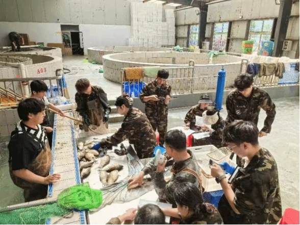 学生在校外实训基地参与鱼类人工繁殖