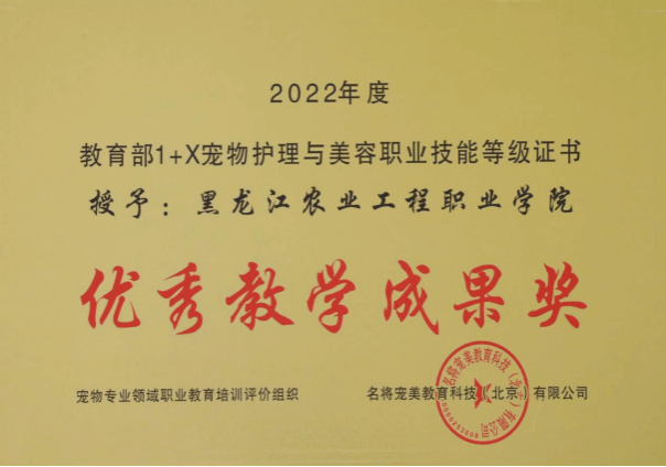 2022年度教育部1+X宠物护理与美容职业技能等级证书优秀教学成果奖