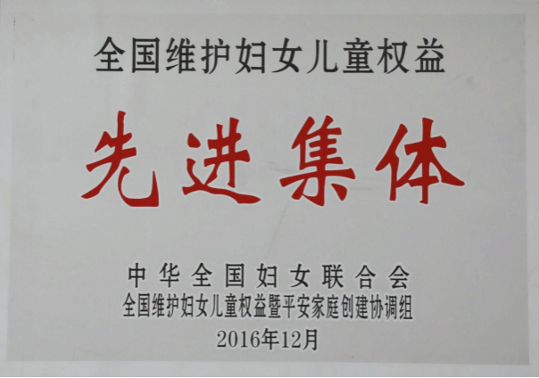 荣获2016年度全国维护妇女儿童权益先进集体