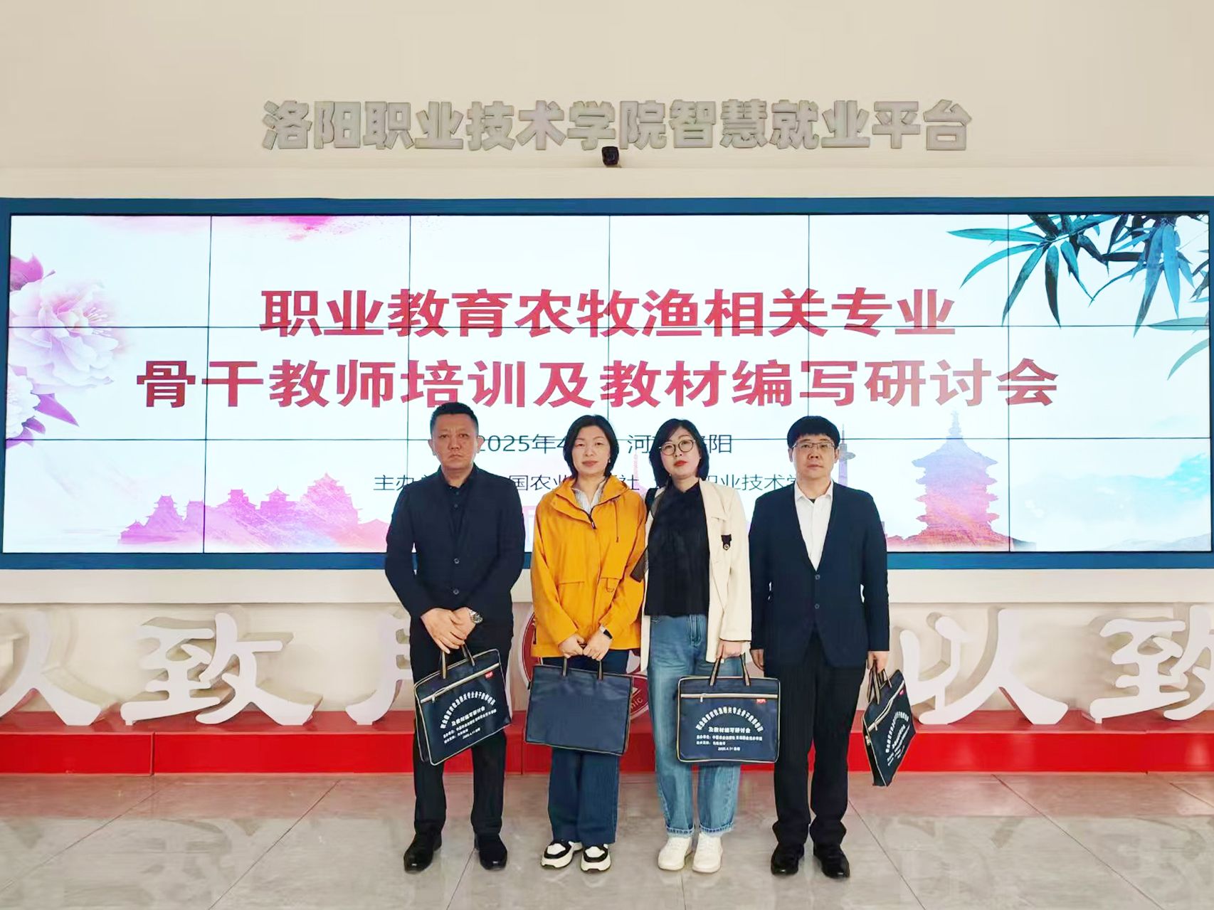 4月11日至13日,由中国农业出版社和洛阳职业技术学院联合主办的职业教育农牧渔相关专业骨干教师培训及教材编写研讨会在洛阳成功举行。来自全国70所院校、行业企业近300名代表共同探讨农牧渔专业前沿技术、教材建设、人才培养等议题。万象城动物科技学院王昕阳、吕海航、汤俊一、王慰慰四名教师参会。