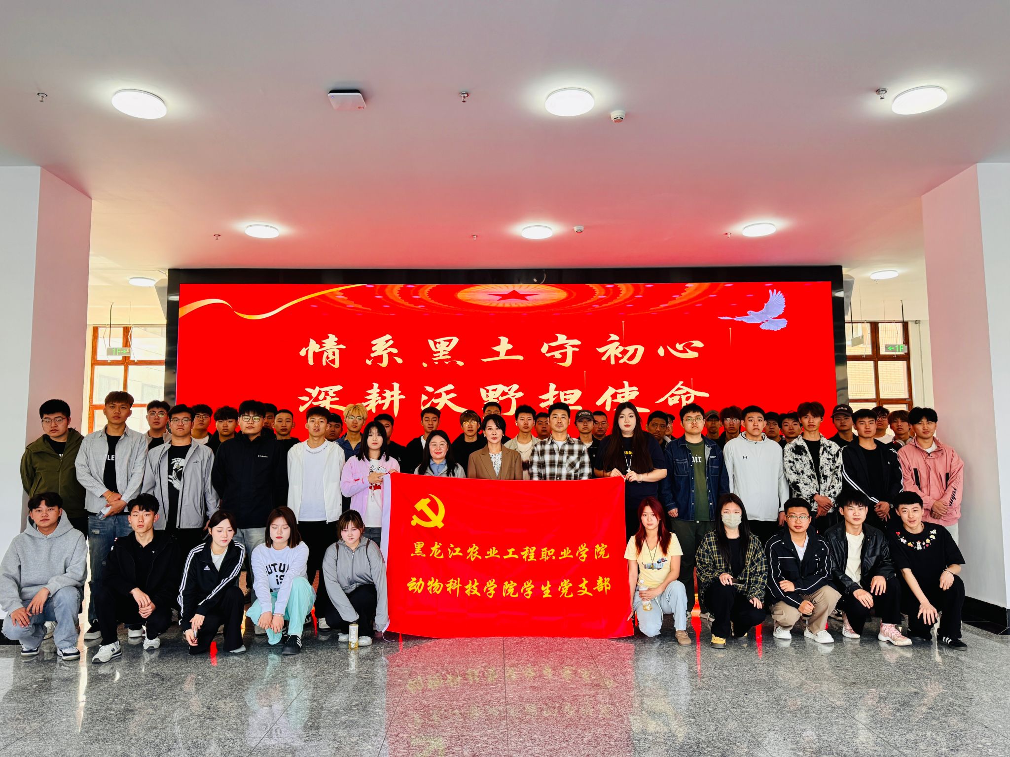 2025年5月22 日,动物科技学院党总支学生党支部依托“一站式”学生社区党建+平台,组织2024级乡村振兴班45名学生,在党总支副书记、学生党支部书记王爱华带领下,赴农业装备学院开展“情牵黑土守初心,深耕沃野担使命”主题研学活动。
