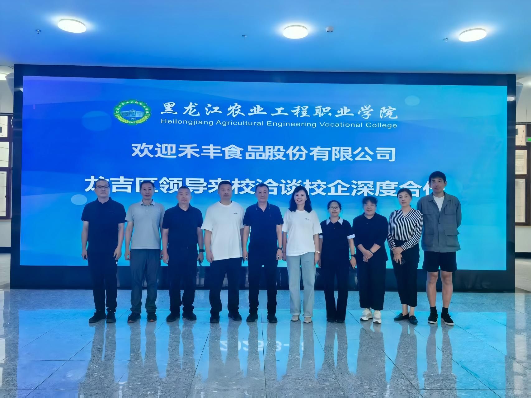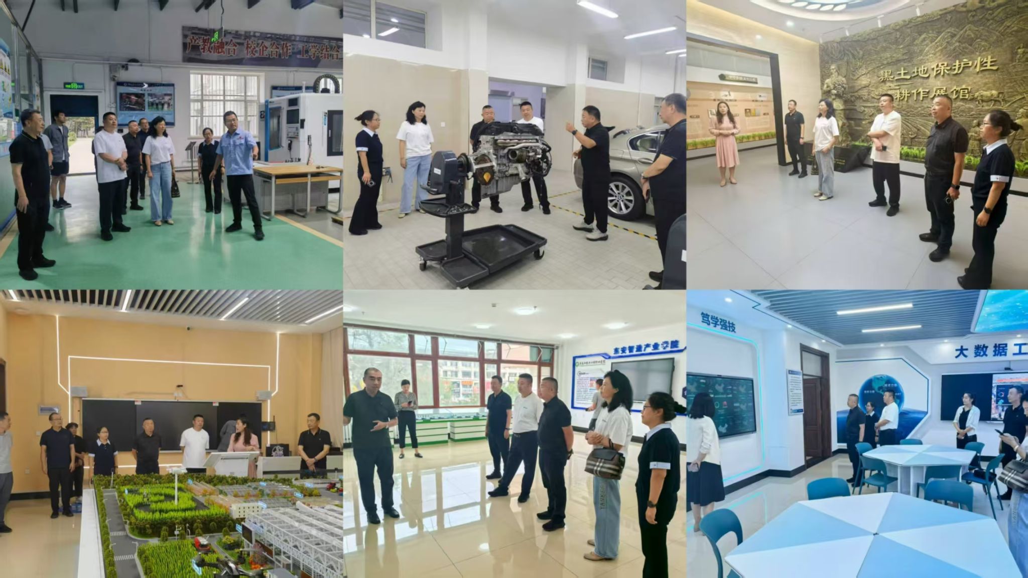 禾丰食品股份有限公司龙吉区领导们参观了万象城数控智能实训基地、宝马BEST哈尔滨培训基地、黑土地保护性耕作展馆基地、无人农场实训基地、东安智能制造产业学院、华为大数据产业学院等实训基地。