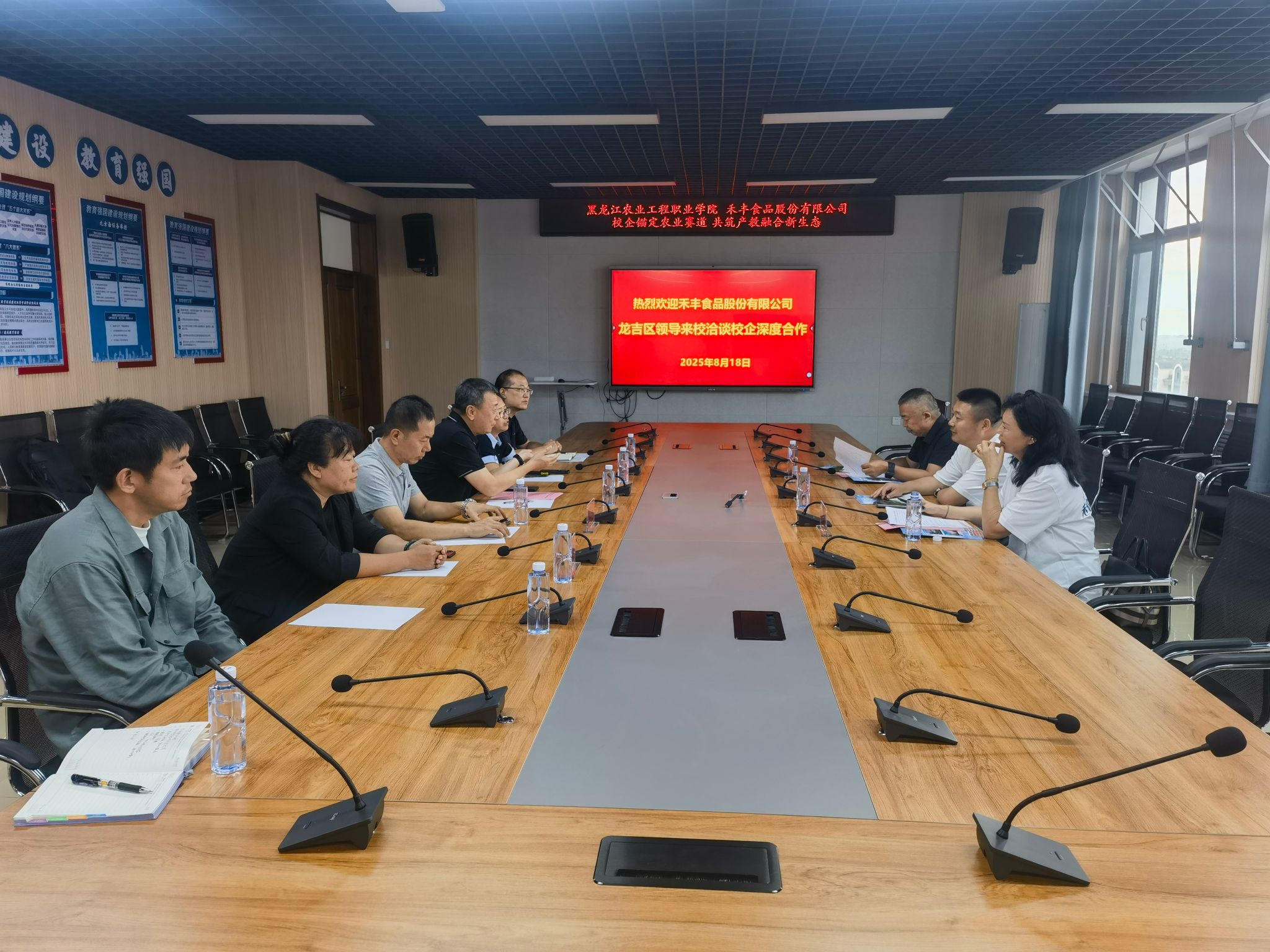 8月18日下午,万象城动物科技学院与禾丰食品股份有限公司在产教融合大楼812会议室举行深度校企合作洽谈会,双方围绕农业产业链升级、人才培养创新、禾丰智慧养殖产业学院建设等核心议题展开深入交流,共同谋划 “教育链 - 人才链 - 产业链 - 创新链” 四链融合的发展新路径。禾丰食品股份有限公司龙吉区副总裁丁志勇、生猪产业化总监李桂杰、肉禽产业化总监姜义福,动物科技学院党总支书记常顺、院长周淑芹、副院长孙辉及专业骨干教师出席会议,会议由孙辉副院长主持。