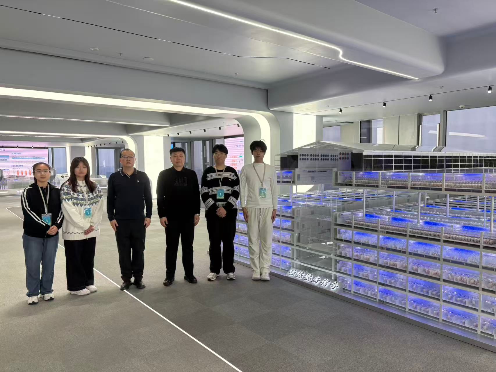 在牧原总部智能展厅,师生们沉浸式体验了数字化养猪全产业链的创新成果。智能养殖沙盘动态展示了 "饲料加工 - 生猪育种 - 智能养殖 - 屠宰加工" 全流程,通过物联网平台实现 240 万套设备实时互联,日均处理数据超 20 亿条。在万物智联展区,学生们了解到智能环控系统,通过传感器实时调节猪舍温湿度、氨气浓度等 10 余项环境指标,确保猪群始终处于 25℃恒温的 "四季如春" 环境中。