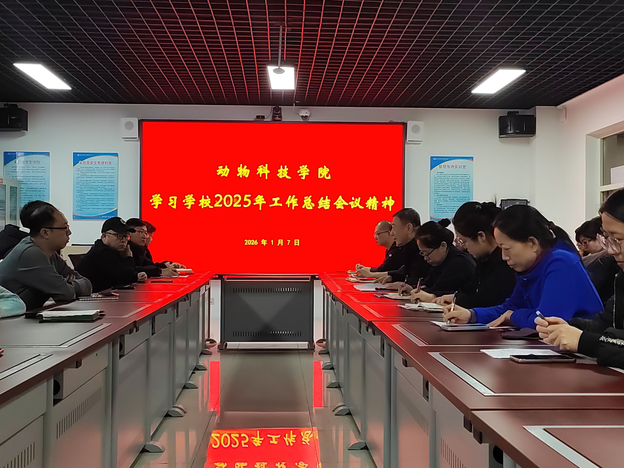 为切实贯彻落实学校2025年工作总结会议精神,统筹推进假期各项重点工作,筑牢安全屏障,2026年1月7日,动物科技学院于第二实训楼208室召开寒假工作安排及安全会议。学院全体教师参加会议,会议由副院长孙辉主持。