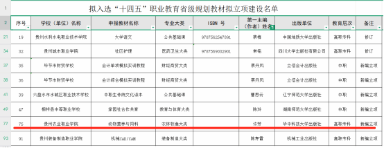 我院教师编写《动物营养与饲料》教材认定为贵州省首批“十四五”职业教育省级规划教材