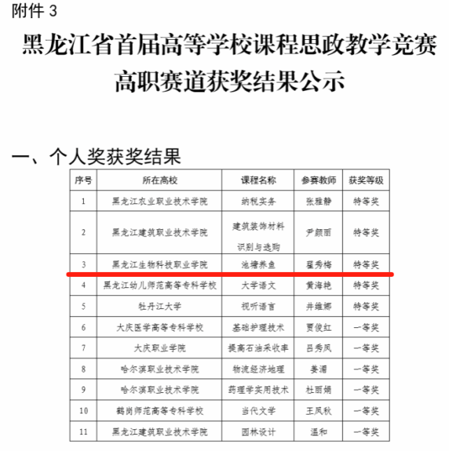 我院《池塘养鱼》获黑龙江省首届高等学校课程思政教学竞赛一等奖