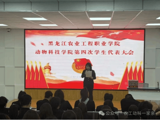 动物科技学院第四次学生代表大会在庄严的国歌声中正式开幕。第三届学生会主席团成员韩题如代表第三届学生会作工作报告,报告系统总结了过去一年中,动物科技学院第三届学生会充分发挥桥梁纽带作用,在强化价值引导、激发组织活力、服务成长成才等方面取得显著成效,积极引领广大同学在文化强国建设中贡献青春智慧与力量,为学院高质量发展注入澎湃青春动能。