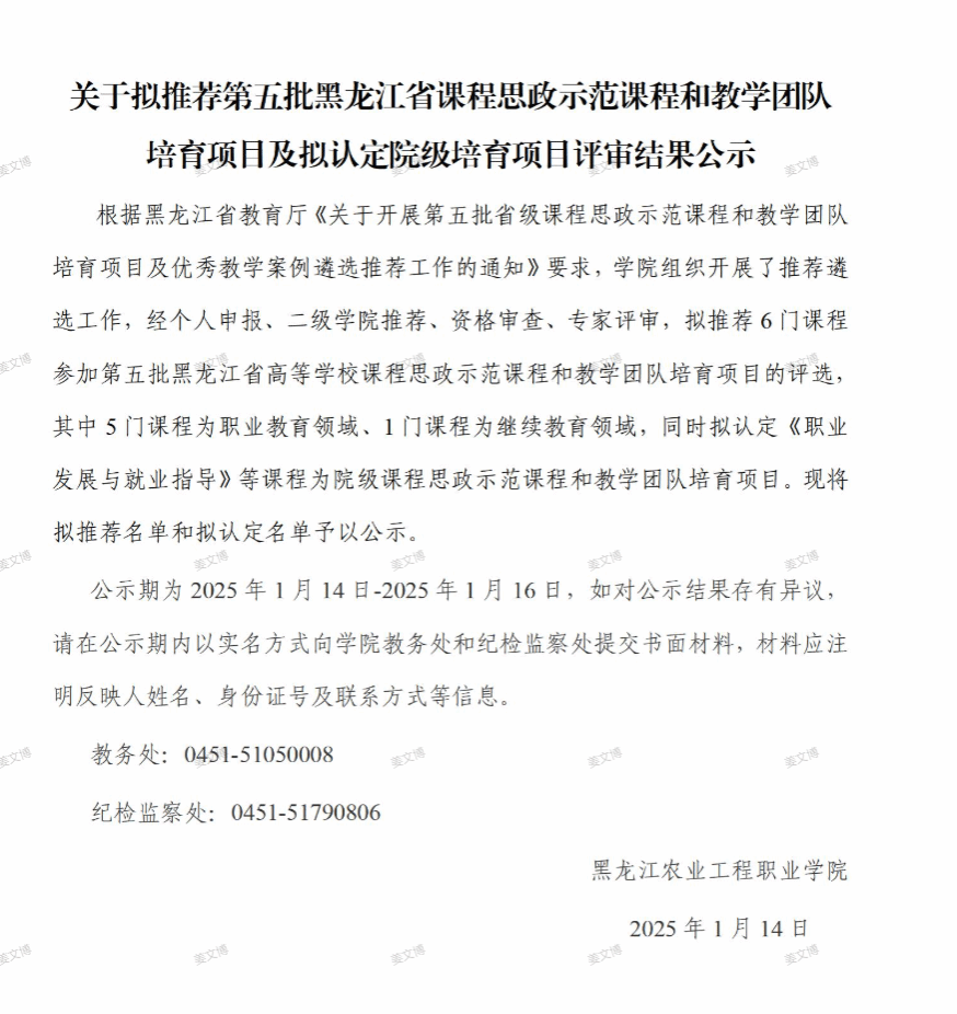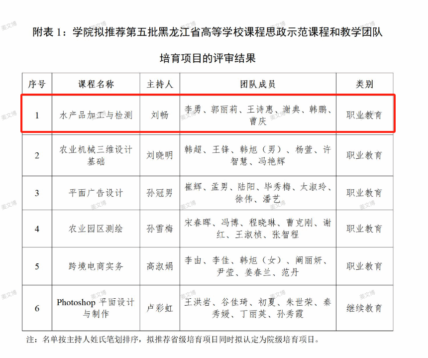 我院《水产品加工与检测》课程拟推荐第五批黑龙江省课程思政示范课程和教学团队培育项目及拟认定院级培育项目评审结果的公示