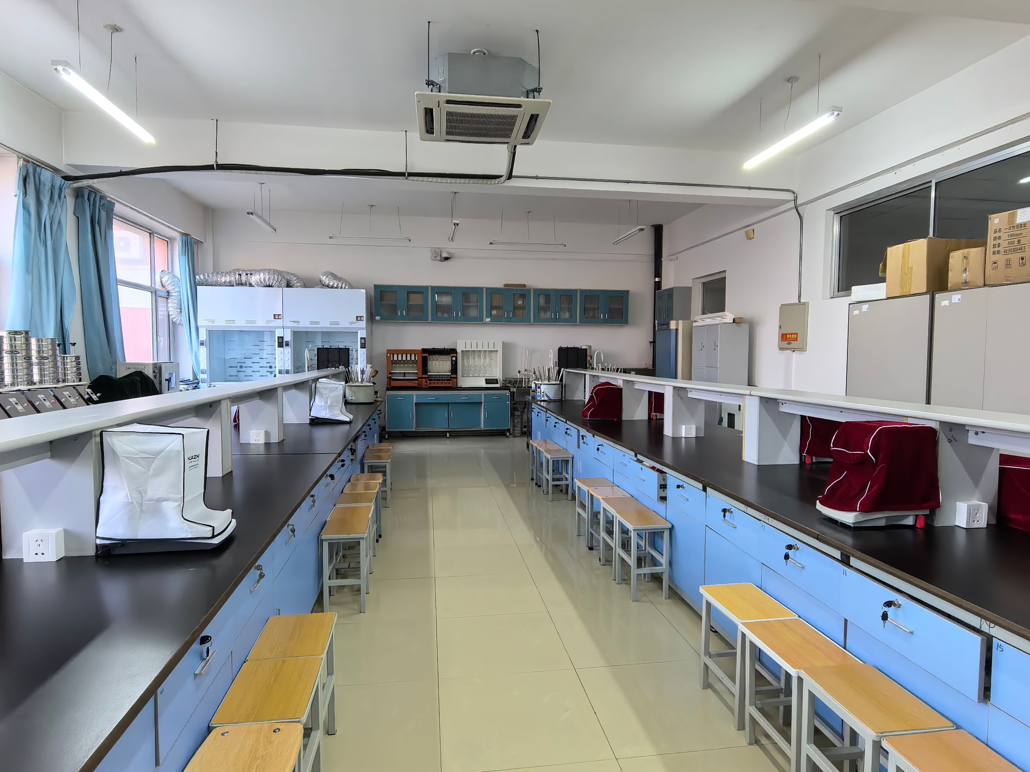 饲料分析与检测实训室位于二实训209室,建筑面积90平方米。本实训室是参照谷实生物集团股份有限公司化验室而建设,集生产与教学为一体,为动物营养与饲料教学、实训创造真实的职业环境,旨在突破传统教学方式,建立集技能训练、职业素质沉淀、社会服务与指导、行业技能资格证书获取为一体的全新实践教学模式。现为黑龙江省“1+X”家庭农场畜禽养殖职业技能鉴定考核站点、黑龙江省“1+X”粮农食品安全评价职业技能鉴定考核站点。