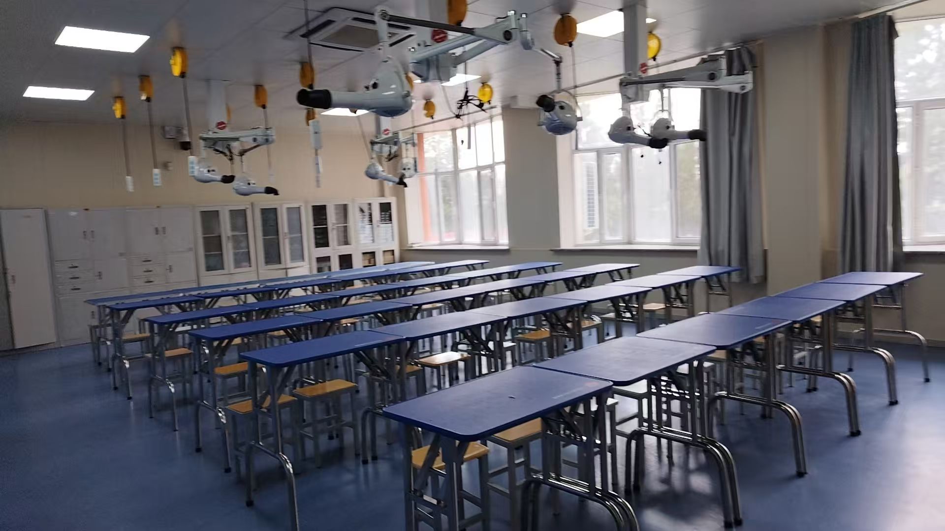 实训室拥有热水器、宠物浴缸、宠物spa机、吹风机、吹水机、标准美容台、液压美容台、宠物创染套装、宠物spa套装、宠物精油套装等设备。