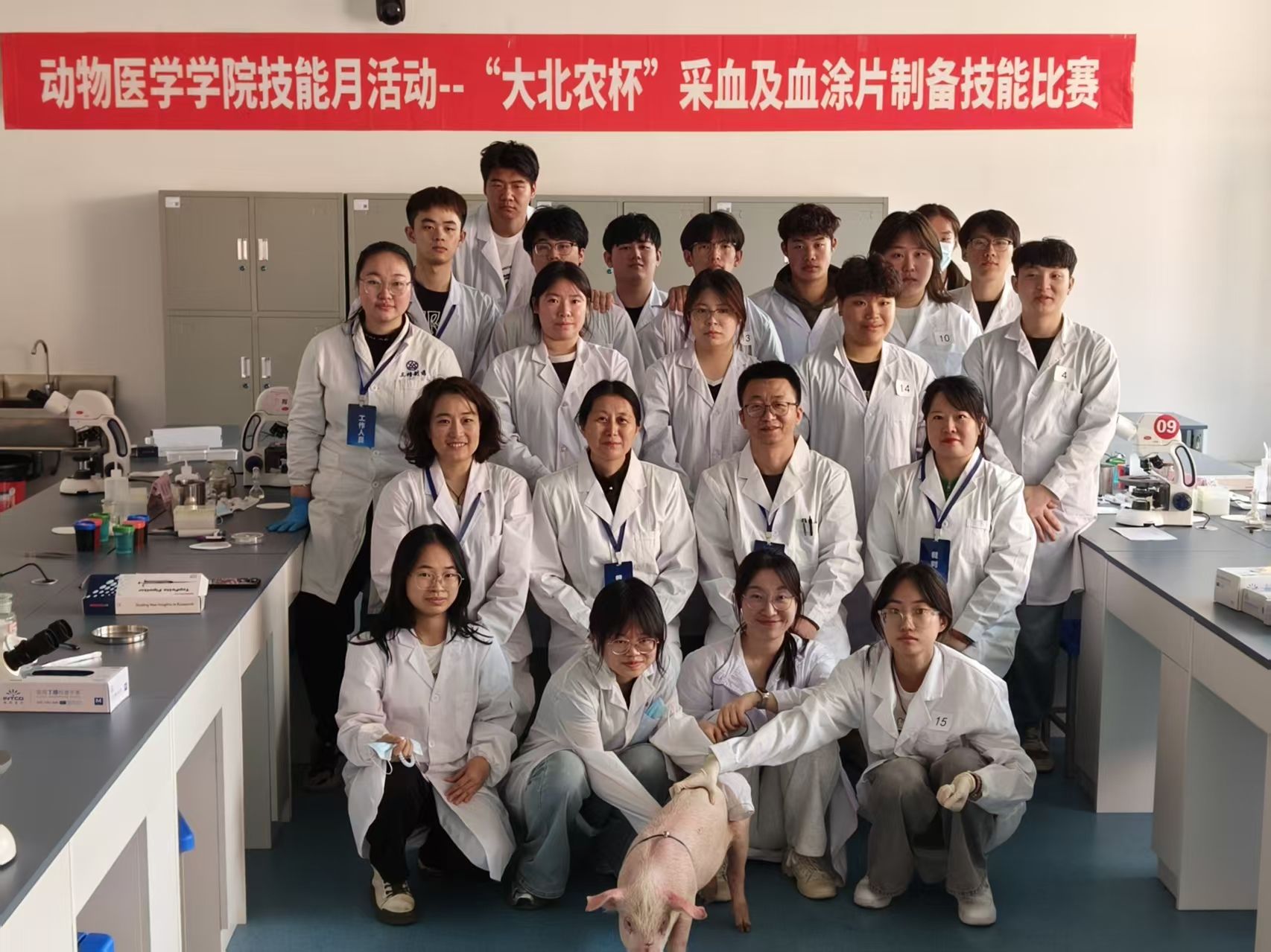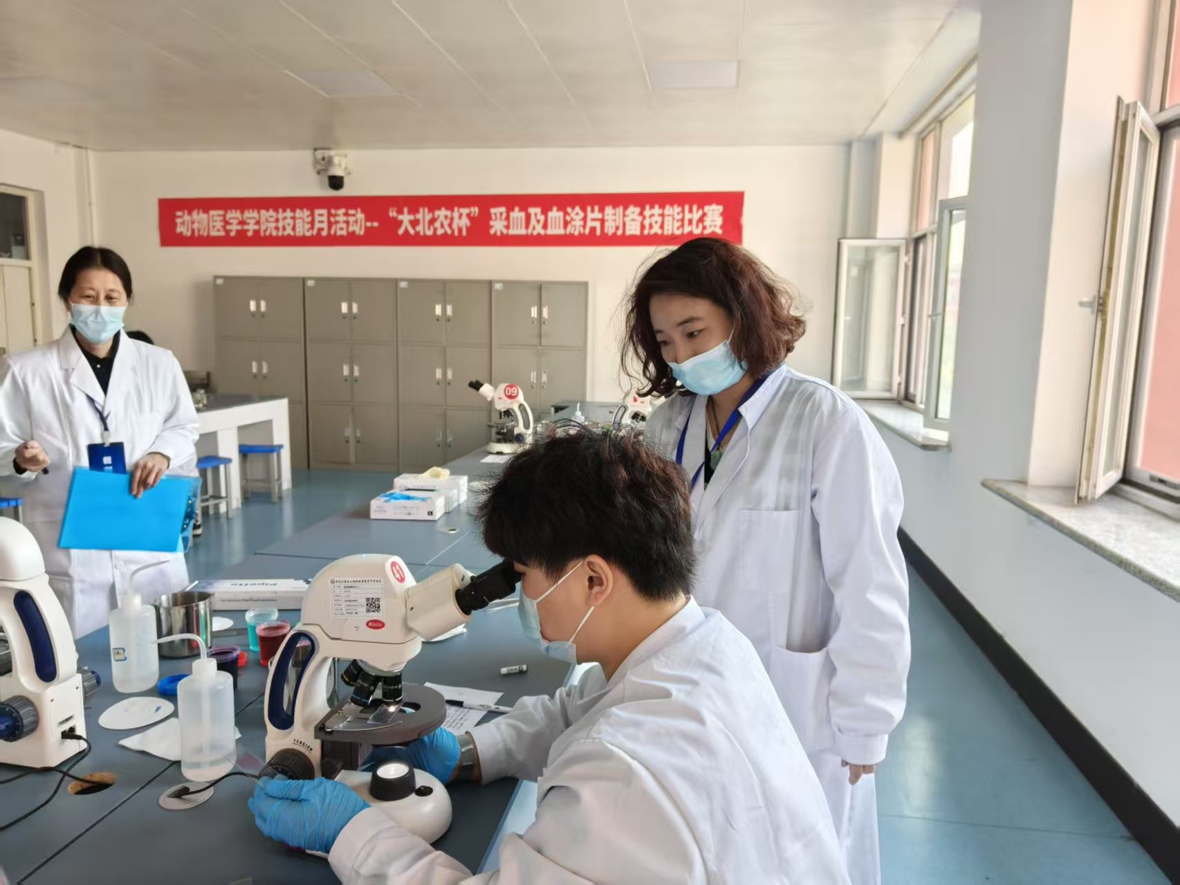 为激发学生的学习积极性和主动性,加大营造技能学习氛围,有效推进“岗课赛证综合育人,实现以赛促教、以赛促练、以赛促学,5月20日,动物医学学院在第二实训楼311举办了技能月系列活动之“大北农杯”采血及血涂片制备技能比赛。2023级动物医学专业与宠物医疗技术专业13名学生参加比赛。