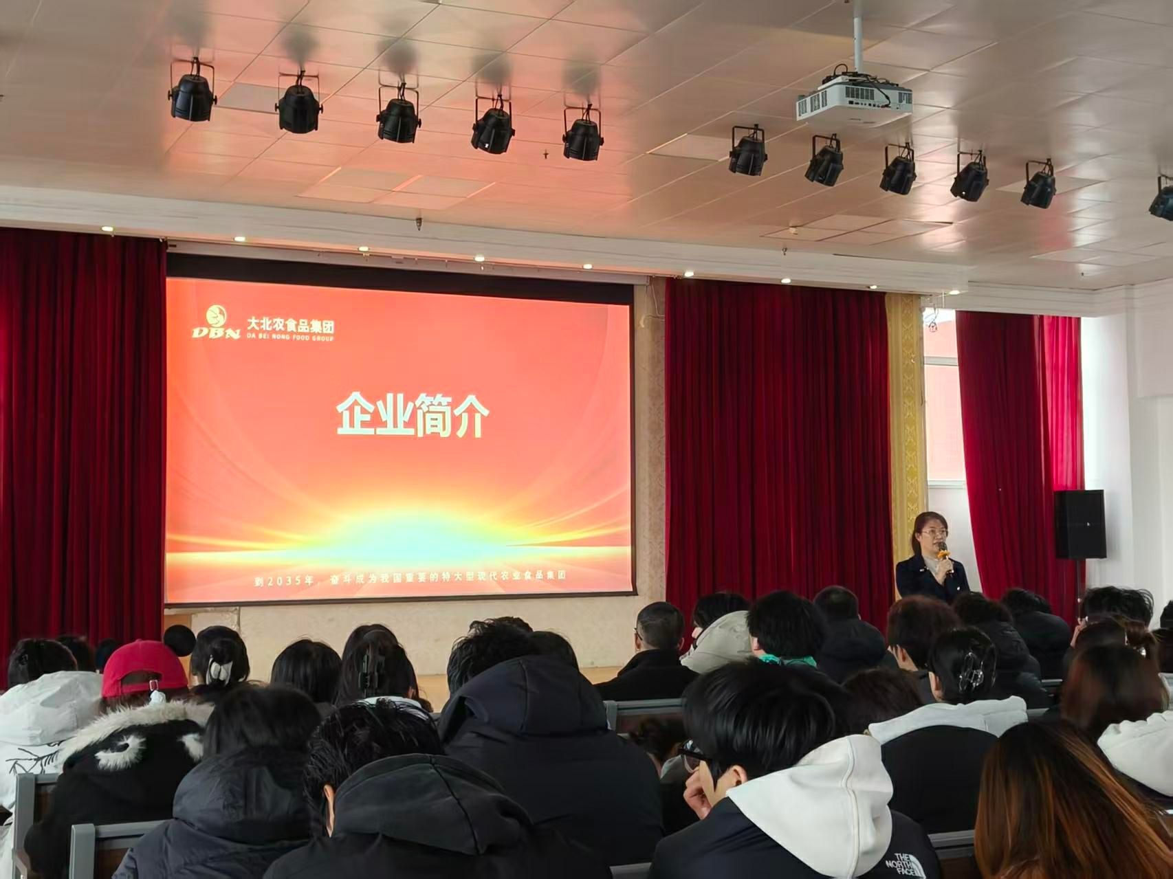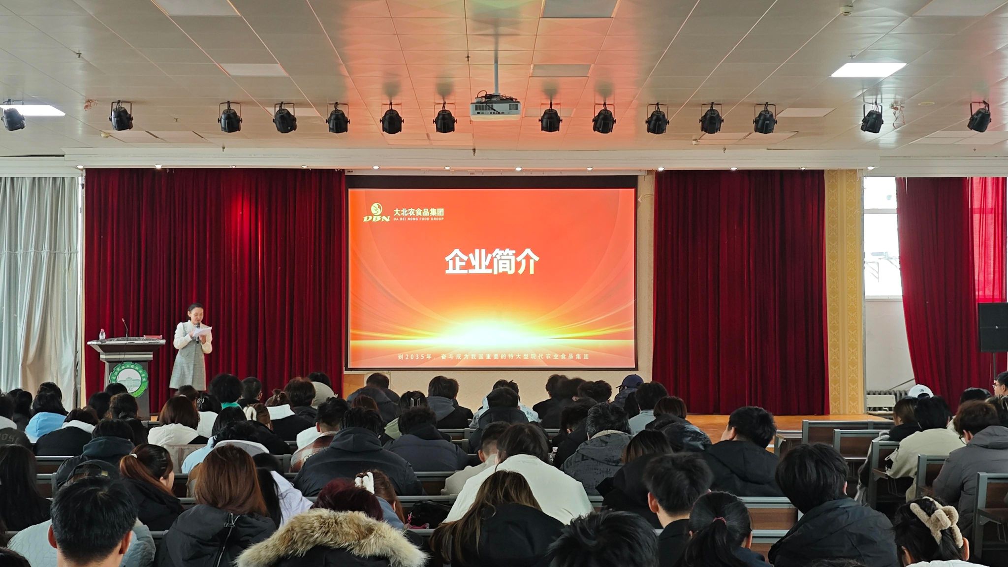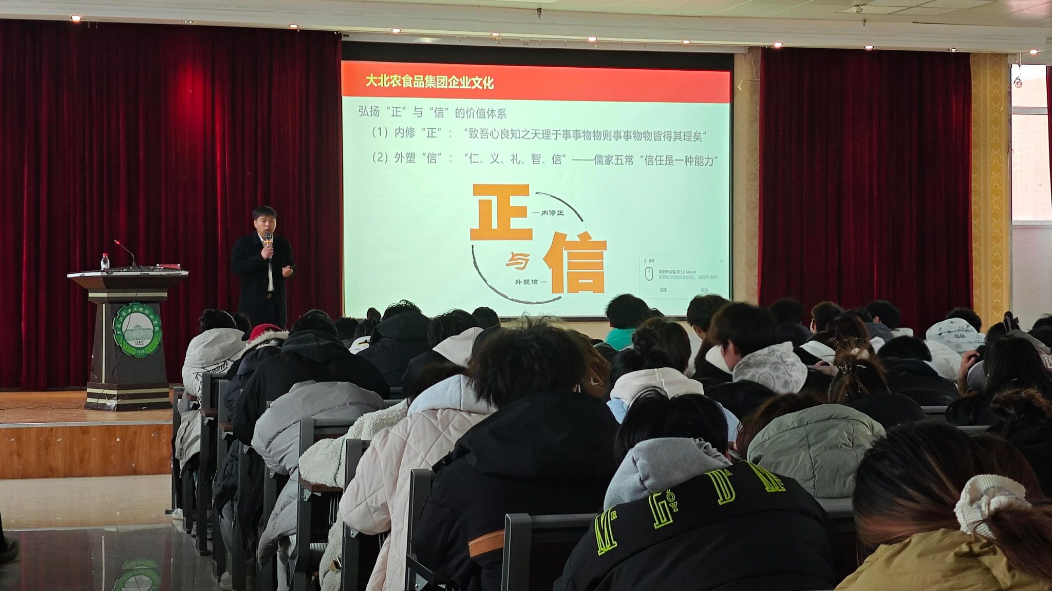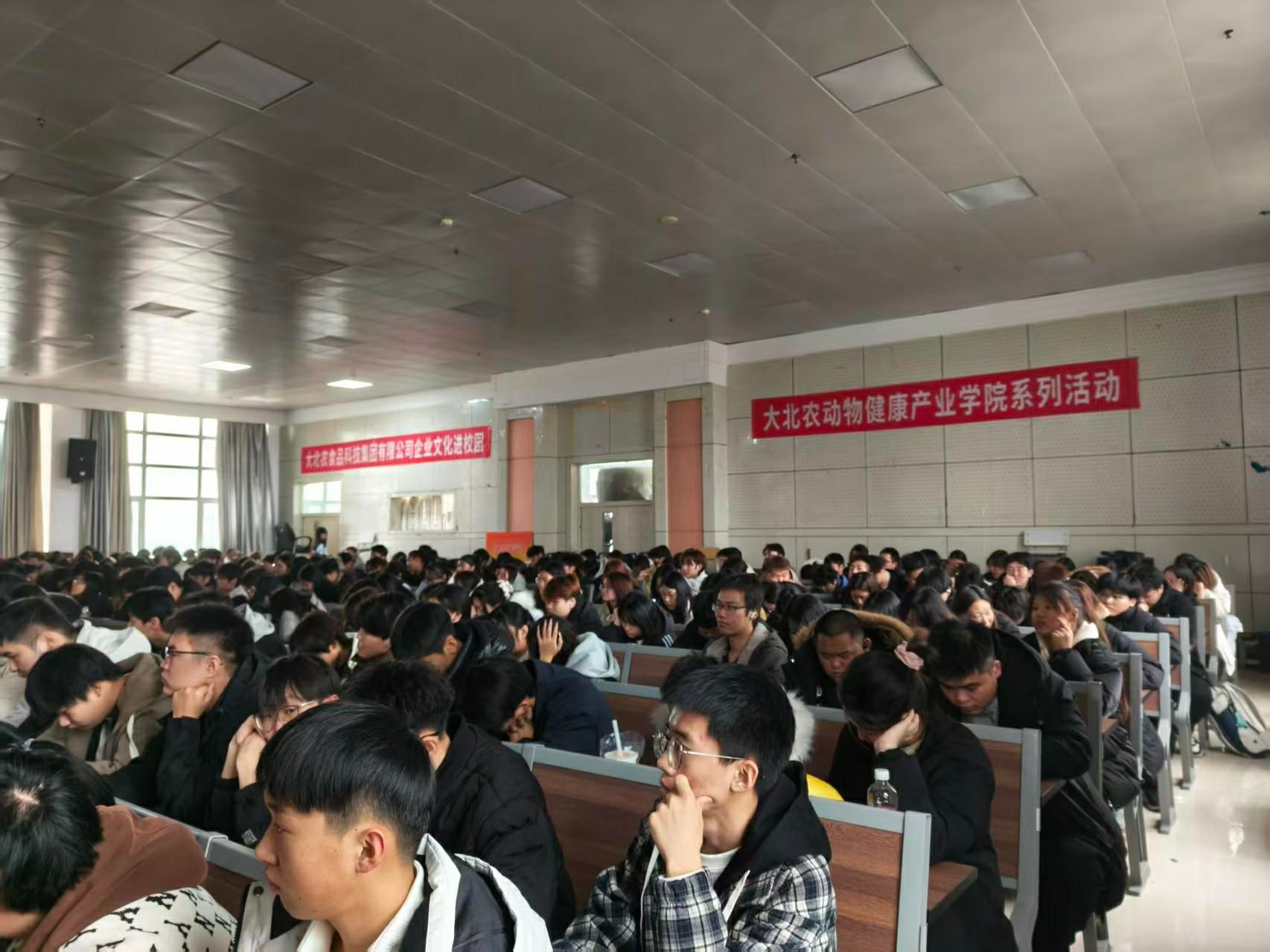 在随后的宣讲环节,大北农食品科技集团有限公司行政管理部经理李欣超为师生带来了一场精彩的企业文化分享。他详细介绍了大北农集团的发展历程、核心文化理念、产业布局及人才发展体系,通过生动的案例展现了企业文化的凝聚力与驱动力,引发了在场同学的浓厚兴趣与深入思考。