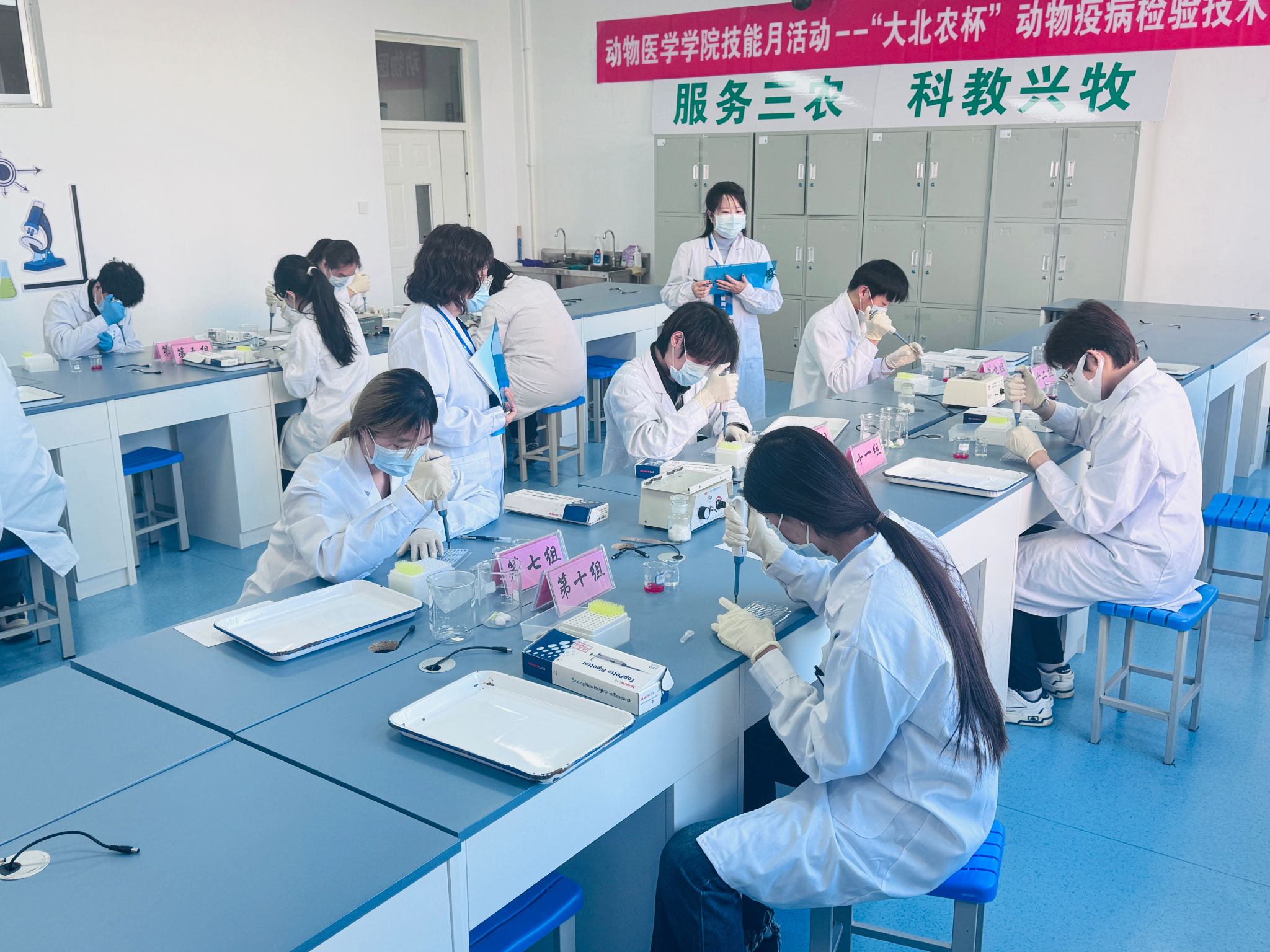 为持续发挥技能竞赛在提升实训教学质量中的重要作用,深化“岗课赛证”综合育人模式,12月10日,动物医学学院技能月系列活动--“大北农杯”动物疫病检验技术技能竞赛在松北校区二实训楼311室拉开帷幕。我院2024级动物医学专业的12名学子同台竞技,充分展现了我院学生扎实的专业技能风采。
