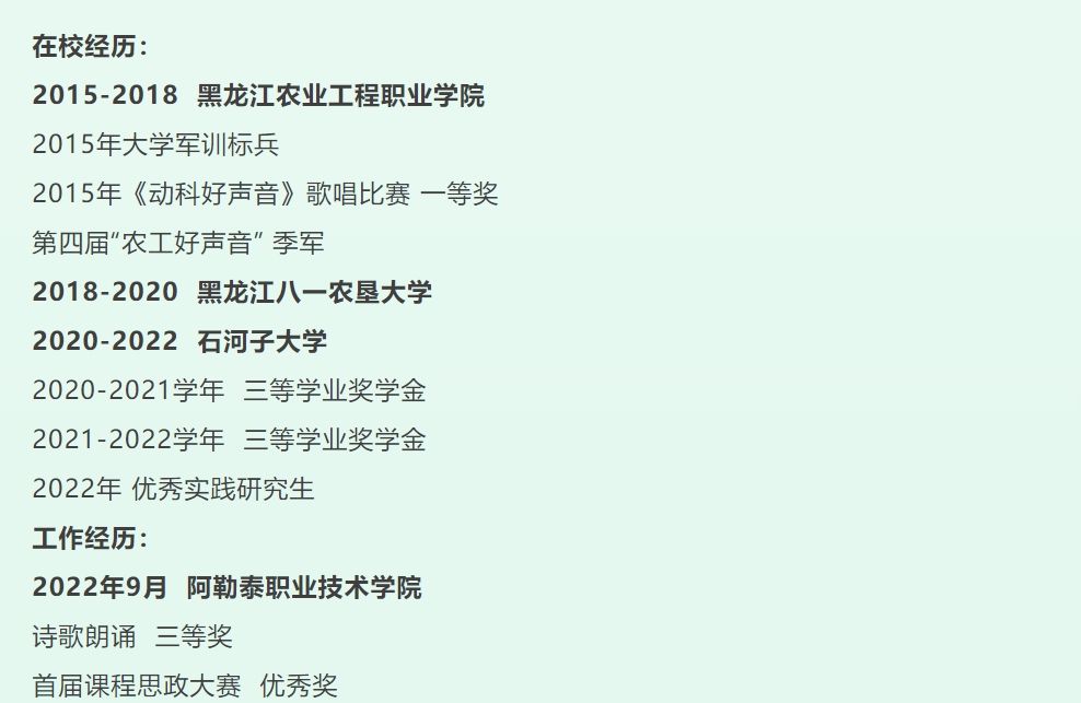 工作单位:阿勒泰职业技术学院畜牧兽医专业 讲师