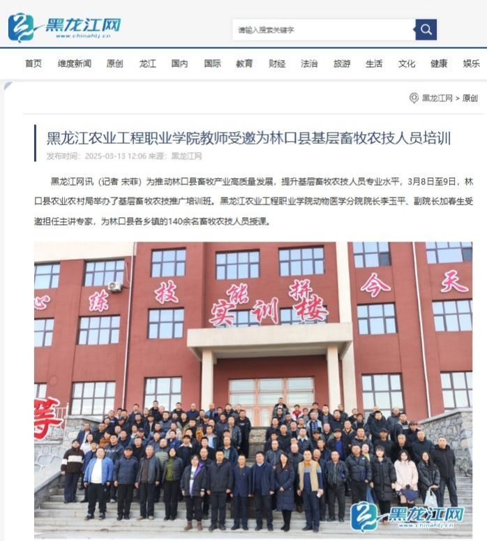 近日,动物医学分院院长李玉平、副院长加春生赴林口县开展科技服务培训的报道引发了媒体界的广泛关注,并被众多知名媒体纷纷转载。