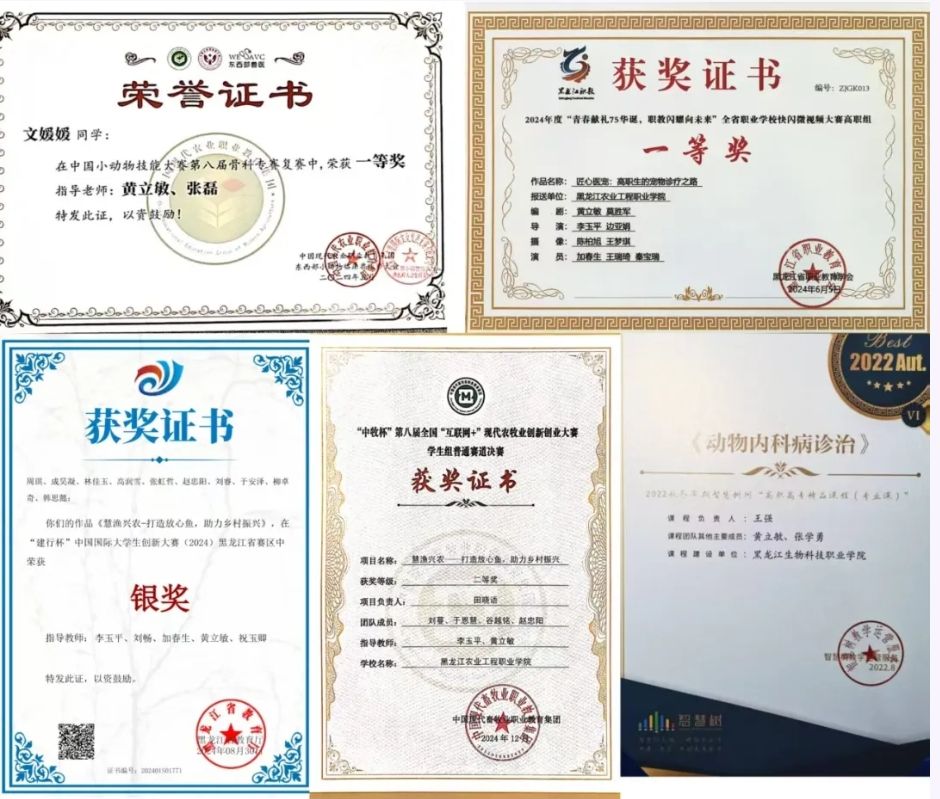 黄立敏不断追求自我提升,2019 年在国家级高职教师培训中荣获优秀学员及优秀学员干部称号,2024 年又斩获全国职业教育教师企业实践优秀教师奖和黑龙江职业教育教师企业实践优秀学员奖。