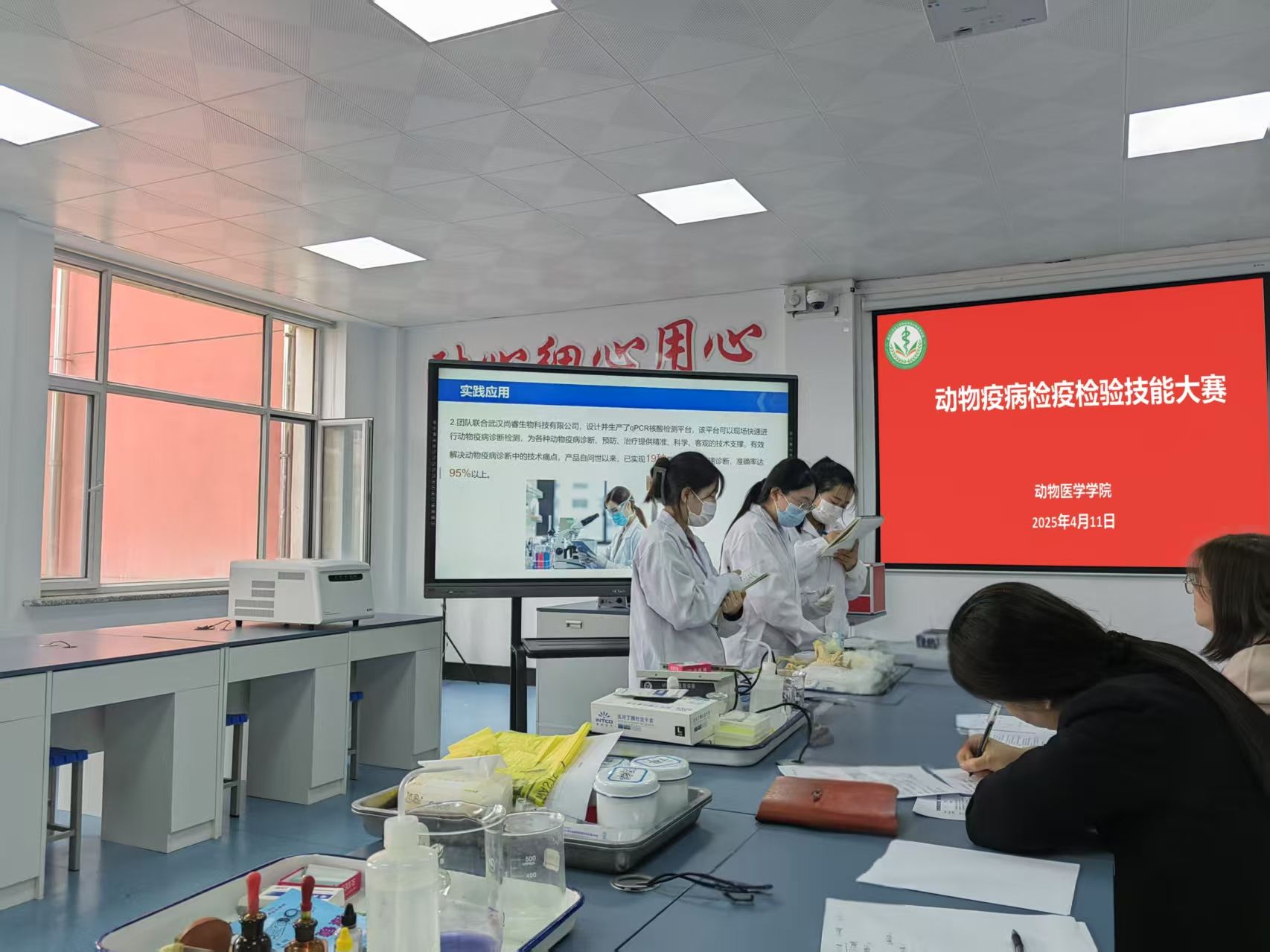 4月11日下午,动物医学学院学生动物疫病检疫检验技能大赛在松北校区二实训311室举行。本次赛事深入践行习近平总书记关于职业教育的重要论述以及全国职业教育大会精神,致力于职业教育高质量发展,充分发挥以赛促学的积极作用,为2025年黑龙江省职业院校技能大赛暨世界职业院校技能大赛选拔赛选拔优秀人才做了充足的准备。