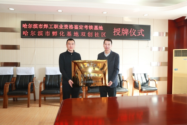 仪式上,哈尔滨市职业技能鉴定指导中心正式授予我院为“哈尔滨市焊工职业资格鉴定考核基地”,这也标志着哈尔滨市唯一一家焊工职业资格鉴定考核基地正式成立。