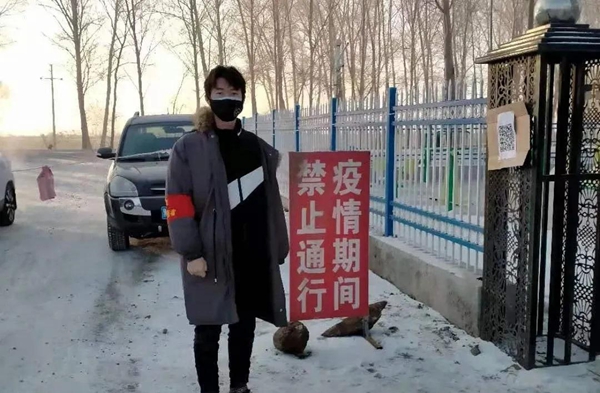 20-622班团支书郭天文,担任鹤岗市绥滨县动力社区二组组长,负责组织管理志愿者工作分配、信息注册等工作,赢得了群众的好评。
