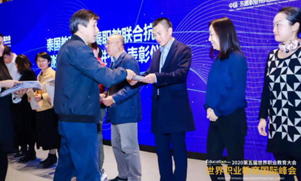 大会展示了“一带一路”的职业教育文化交流成果。我院高慧、杨维娟、艾欣、万香庆、井楠、王昕六位教师于疫情期间借助“唐风”APP课程平台,参与了“一带一路”文化畅通中的对外汉语输出的教育活动,为泰国东部工业区职业院校学生进行了为期两个月的线上汉语教学,获得泰国教育部的感谢,并获得“泰国教育部中泰职教联合抗疫先进个人”称号,我院荣获“2020中泰职教国际合作贡献奖”。