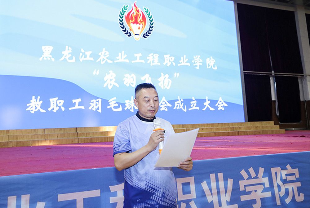 协会会长霍峰代表协会向学院工会和全体会员表达了诚挚的谢意,他提到,我院羽毛球协会的成立,为广大教职工提供了一个切磋技艺、交流感情的平台,将积极推动全民健身运动的发展,提高教职工的身体素质。