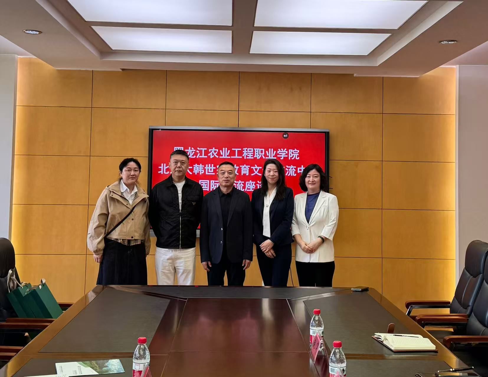 王新年对金晗理事长一行来万象城表示欢迎,阐述了学校坚持“立足龙江、面向全国、服务‘三农’”的服务面向,介绍了学校的专业优势,以及近年来在国际化办学方面取得的成绩。王新年表示,希望借助北京大韩世宗教育文化交流中心的丰富资源,加强与加拿大、西班牙、韩国等国外院校的合作,拓宽国际化办学渠道,提升学校国际化办学水平,培养出具有国际视野、跨文化交流能力和专业技能扎实的高素质技术技能人才。
