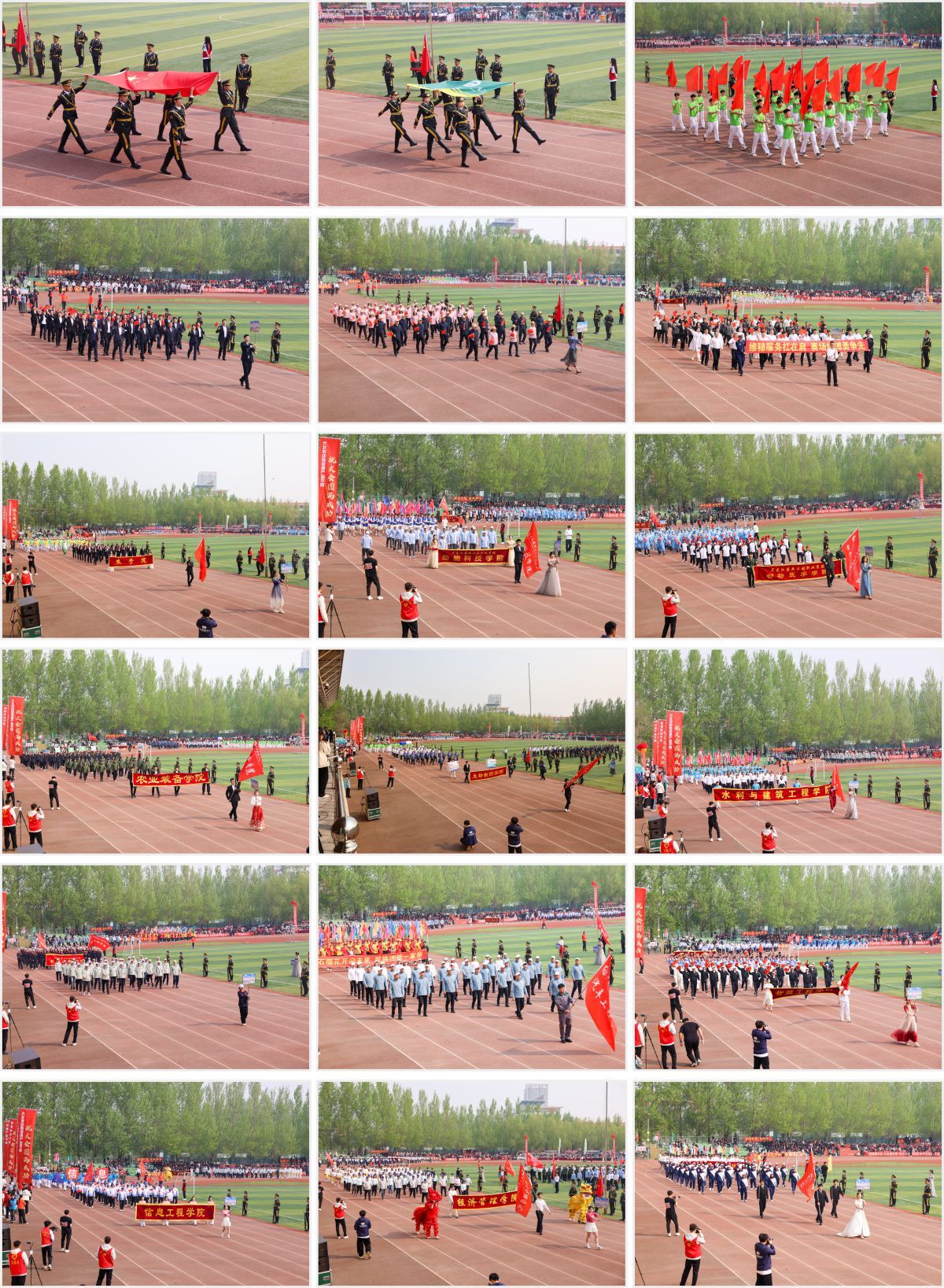 彩旗飘扬,激情回荡。上午8时,伴随着昂扬的运动员进行曲,国旗护卫队、校旗队步履铿锵,护送国旗和校旗率先入场。随后,刀旗队、花束队、教职工代表队阔步入场,12个学院代表队依次入场。他们服装统一,步伐矫健,口号响亮,以积极向上的精神风貌依次通过主席台,充分展现了农工师生的蓬勃朝气和热情活力。