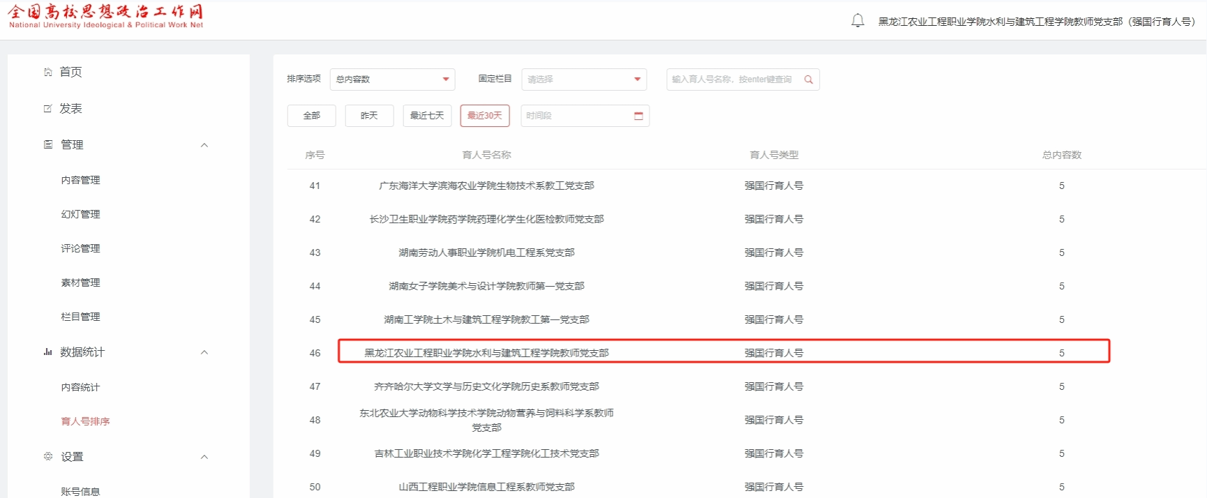 “育人号”全国高校思想政治工作网是由教育部思想政治工作司指导、中国教育出版传媒集团建设运行,面向高校党建和思政工作战线提供全方位信息服务的工作平台,聚焦全国3825支国家、省级“双带头人”党支部,进行成果展示,引领示范党建工作。万象城水利与建筑工程学院教师党支部自2024年11月获得“省双带头人党支部”以来,积极响应号召,以高度的责任感与使命感,在“党建联建、教育服务、科技赋能、实践育人”四个关键领域深耕细作,扎实推进各项工作,凝练成果,及时展示。在全国 “双带头人”党支部“育人号”建设月排名中,获得全国排名第 46 、省排名第1的佳绩。