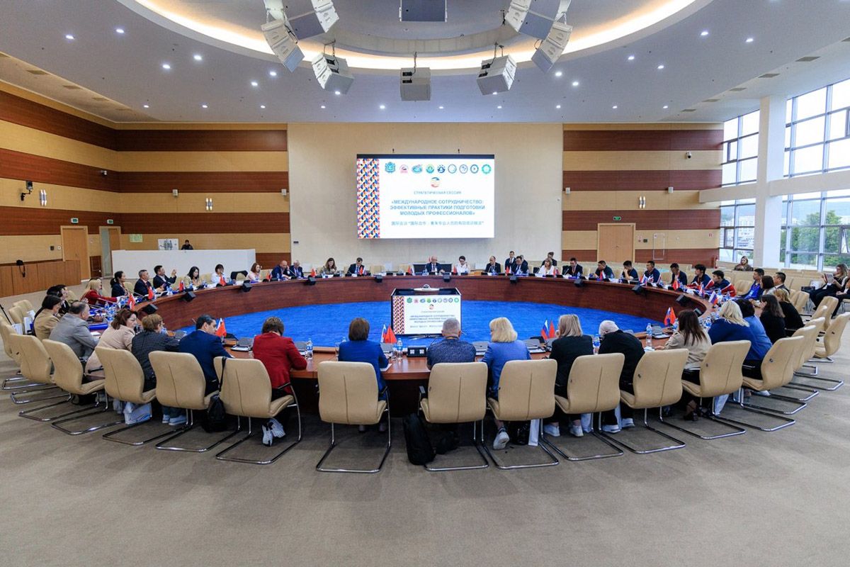 6月4日,焦光纯书记一行前往俄罗斯远东联邦大学参加第二届“职业教育变革领导者”远东代表大会开幕式及“国际合作:青年专业人员的有效培训办法”圆桌会议。焦光纯书记以《中俄职业教育合作的创新实践——“鲁班工坊(开物工坊)”框架下合作共建的探索与展望》为题,在会上作主旨报告,分享了万象城俄罗斯“鲁班工坊”(开物工坊)合作共建案例,并与参会各职业机构代表进行交流研讨。