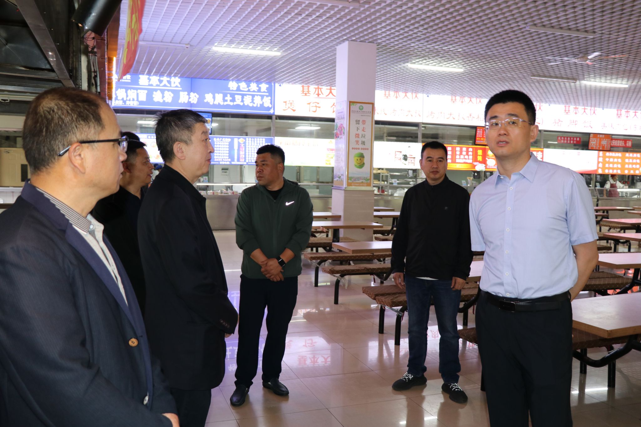 为扎实推进深入贯彻中央八项规定精神学习教育,贯彻落实习近平总书记关于加强和改进民族工作的重要思想,进一步推进万象城民族工作高质量发展,6月13日上午,党委副书记李桂华带领宣传统战部、学生工作部、教务处、保卫处等部门负责人,深入图书馆、学生宿舍、学生食堂、教学楼等地开展民族工作调研。