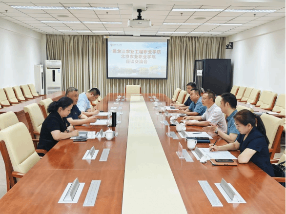 随后,张永强校长一行与北京农业职业学院领导开展了交流活动。北京农业职业学院校长张德强、副校长张晓辉及相关部门负责人参加交流。双方围绕专业群建设与课程创新、产教融合与校企合作模式、实践教学与技能竞赛组织、教师团队建设与“双师型”教师培养等多个方面进行了广泛而深入的探讨。