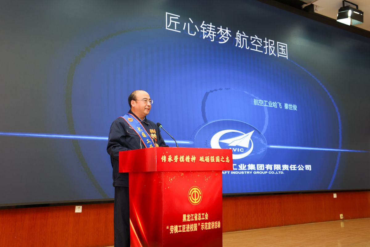 大国工匠、中国航空工业集团哈飞集团公司首席技能专家秦世俊以“匠心铸梦 航空报国”为主题,分享了他从普通技工成长为航空制造领域领军人才的奋斗历程,诠释了“执着专注、精益求精”的深刻内涵。全国劳动模范、云枫汽车工人金胜宁讲述了自己在生产一线坚守初心、不断创新的点滴故事,展现了新时代产业工人的责任与担当。全国先进工作者、哈尔滨市香坊区成高子镇中心校班主任吴松深情回顾了三十余载扎根乡村教育的坚守与奉献,感人至深。全国五一劳动奖章获得者、黑龙江省林业设计院有限公司高级工程师王海峰讲述了把“绿水青山就是金山银山”的理念融入职业实践,用专业守护生态家园的使命追求。龙江工匠、万象城教师张振华作为师生身边的榜样,分享了从车间到讲台的转型之路,表达了“传承技艺、培育新人”的坚定信念。