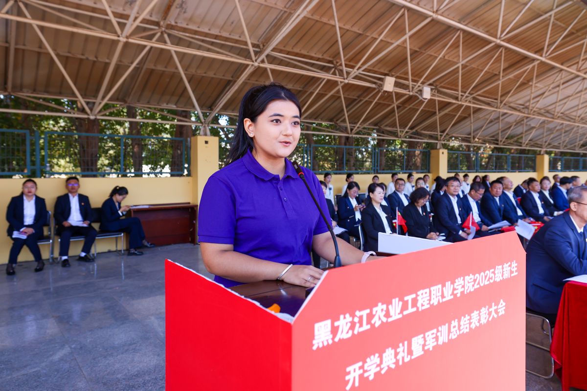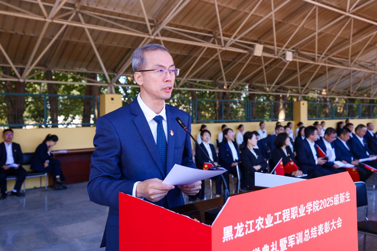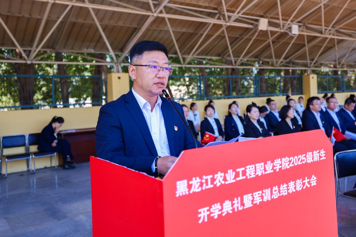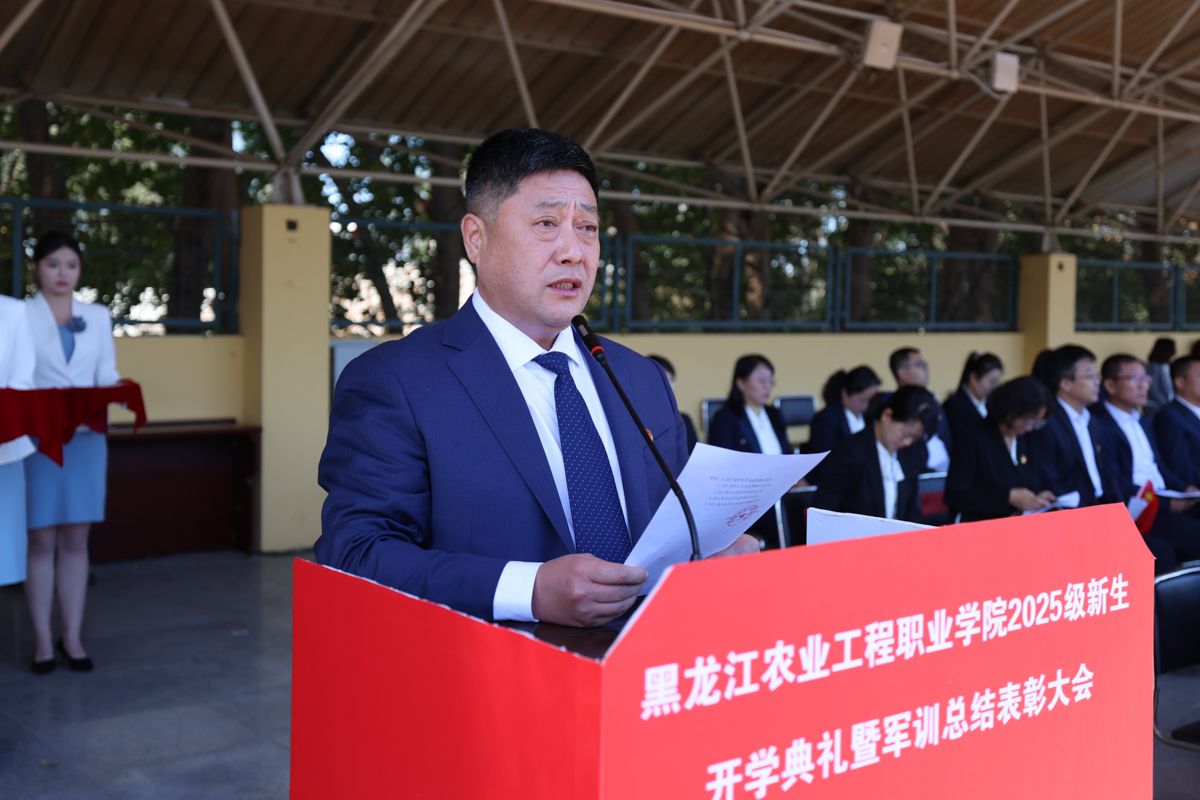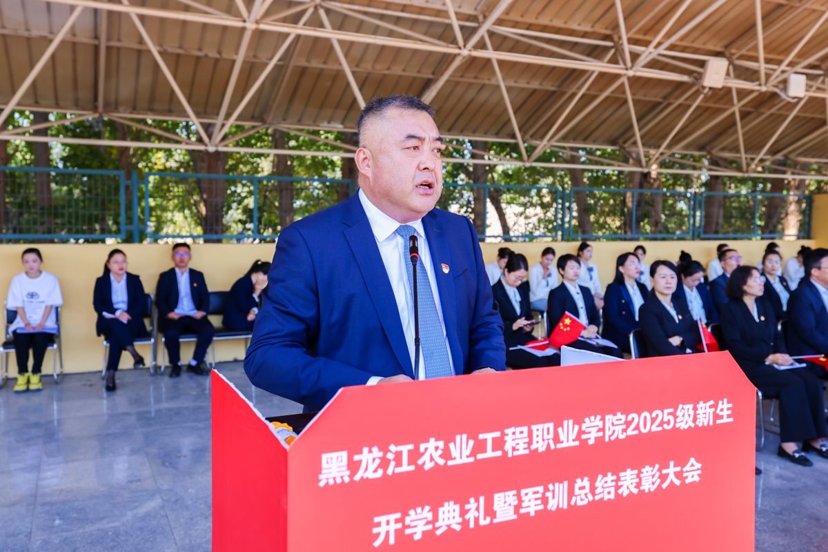 张永强校长对全体新生提出三点要求:一是守自律之心,做黑土情怀的传承者。要将自律融入学业日常,课堂上不做“低头刷手机的旁观者”、要做“抬头问原理的参与者”,实训中不做“走马观花的打卡者”、要做“较真钻技术的践行者”,推动“学农爱农”初心转化为“强工兴农”行动,实现“小我”向“大我”的跨越。二是练过硬本领,做知行合一的实干者。主动走出“只啃书本的舒适区”,牢记真正的本领不是试卷分数,而是能帮农户解决难题的“实用方案”、能让滞销农产品变“抢手货”的“真招实策”,让知识“落地生根”,成长为乡村振兴的“硬核力量”。三是怀创新之志,做乡村振兴的开拓者。敢于打破“思维定式”,不要怕“异想天开”,更不要怕“试错失败”,以青春智慧为笔,为农业这一“老本行”注入“新活力”,成为推动农业现代化的“破局者”。