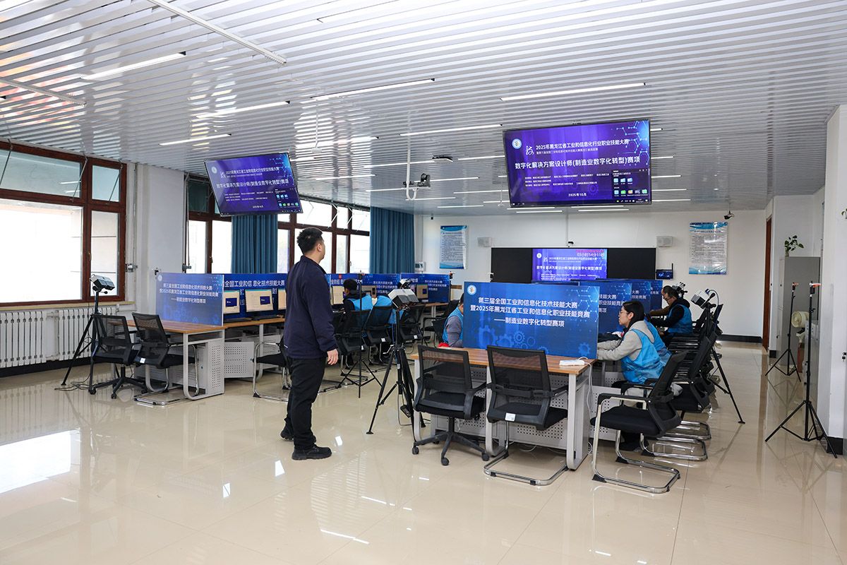 本次大赛以“产才融合、技能报国”为核心主题,聚焦当前产业发展痛点,设置生成式人工智能系统应用员(智能工业机器人)、数字化解决方案设计师(制造业数字化转型)两大赛项,精准对接龙江制造业数智化升级的人才需求。赛事吸引了来自全省13个市(地)的54支队伍、108名选手参赛,涵盖行业技术骨干与青年学子,分职工组、学生组展开技能比拼,既是对全省工信领域技能人才培养成果的集中检验,也是校企协同育人、产教深度融合的生动实践。