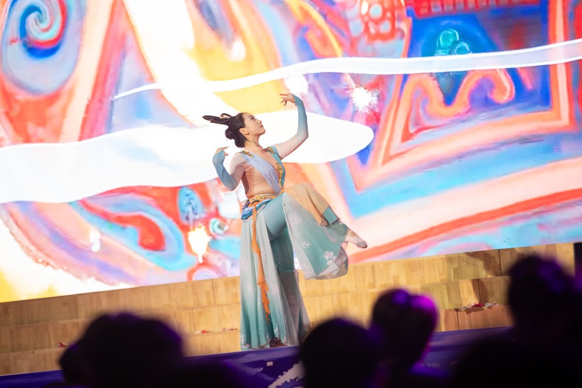 本篇章通过深情演绎,镌刻文化传承的深沉情怀,抒发植根家国、面向未来的赤子之心。农业装备学院的歌伴舞《如愿》,歌声深情婉转,舞姿优美动人,表达了对先辈奋斗的崇高敬意与对山河无恙的美好祝愿;人文艺术学院的诗朗诵《读中国》,字字铿锵有力,句句饱含深情,带领观众在波澜壮阔的历史长河中汲取奋进力量;智能工程学院带来的歌伴舞《亲吻祖国》,以炽热的情感、恢宏的气势,将对祖国母亲的无限热爱与赤诚之心推向高潮,为整场展演画上圆满句号。