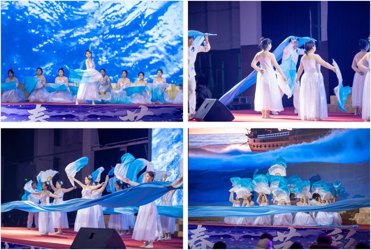 本篇章以艺术为笔,描绘青春相逢的美好画卷,彰显学子朝气蓬勃的力量。信息工程学院与生物制药学院联合呈现的男女声二重唱《好相逢》,歌声婉转悠扬、深情动人,传递着同窗相聚的真挚情谊与青春共鸣;水利与建筑工程学院、机械工程学院及音乐社团合作演绎的歌曲串烧,旋律交织、节奏明快,用动感音符点燃青春激情,尽显青年学子的洒脱与活力;动物医学学院带来的情景歌舞《第一天》,通过鲜活灵动的表演再现了校园生活的点滴趣事与成长感悟,勾起全场师生的共同回忆;农学院与舞蹈社携手献上的爵士舞串烧,以动感十足的节奏、极具张力的舞姿,展现了青年一代自信昂扬、勇往直前的精神风貌,将现场气氛推向小高潮。