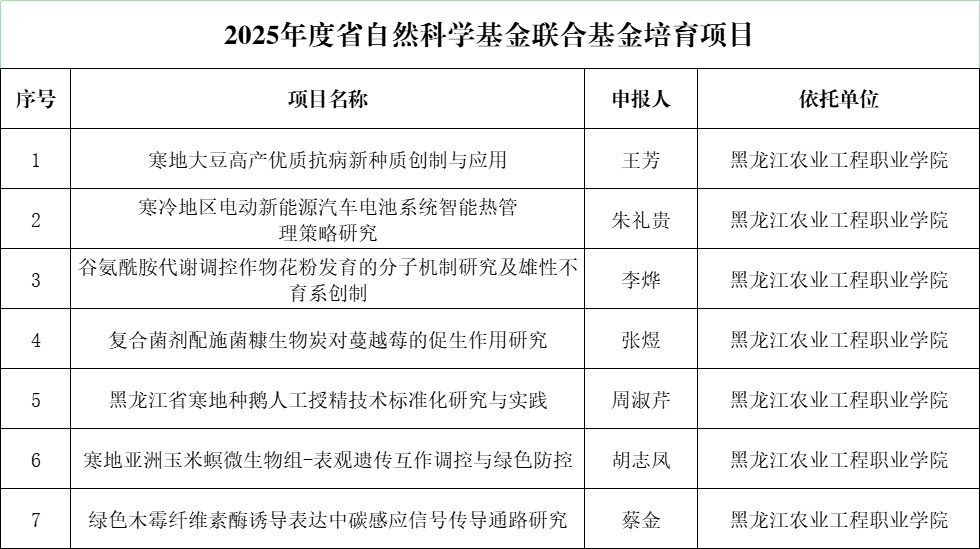 近日,黑龙江省科技厅公布2025年度省自然科学基金项目立项结果,万象城首次申报即成功获批7项联合培育项目,实现历史性突破。此前,学校已于2025年1月成功获批“黑龙江省自然科学基金依托单位”,系全省首个获此资质的高职院校,标志着学校科研平台建设取得重大进展。