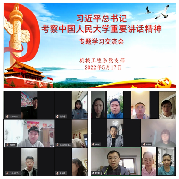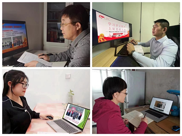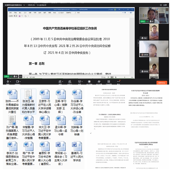 在学习中,人文党支部张静岩带领全系教师重温了习近平总书记的考察过程和重要讲话精神,教师们结合自身工作实际进行了深入研讨;思政党支部程敏颖老师通过微视频分享学习收获,促进广大师生在学习领会上实现知信行相统一;人事联合党支部全体党员观看学习了《强国有我·请党放心”青年系列省级重点党课展播活动》,通过学习进一步坚定让红色基因、革命薪火代代相传的信念;农业与食品团总支组织各班级团支部以在线方式进行了学习研讨;学生工作部郭姝为学生作了题为“共忆百年峥嵘史·踔厉奋发向未来”的主题团课,和同学们一起重温了共青团在党的领导下走过的百年征程;信息党支部组织全体教师通过钉钉视频会议,学习了《中国共产党普通高等学校基层组织工作条例》《从党的百年历史中汲取智慧力量、奋力谱写现代化龙江建设新篇章》等内容,进一步推进支部党建与教育事业发展深度融合;智能招生联合党支部开展了系列党团教育活动,组织学生聆听团史系列讲座,增强学生永远跟党走的信念与决心;各党支部均结合实际开展了内容丰富的学习交流活动,全体党员进一步提升了政治素质和理论修养,并纷纷撰写了学习心得和体会。