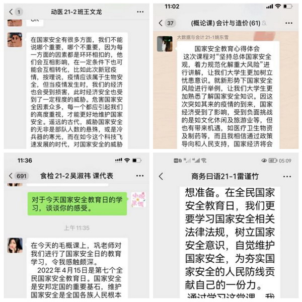 通过开展线上“同上一堂国家安全教育课”活动,让同学们深刻认识到国家安全和我们每个人的生活息息相关,进一步增强了广大青年学生国家安全意识和勇于维护国家安全的责任感和使命感。同学们表示,作为新时代青年,要积极践行总体国家安全观,始终牢记维护国家安全人人有责理念,为构筑国家安全钢铁长城做出贡献。