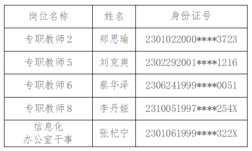 按照《黑龙江省省直事业单位公开招聘工作人员实施细则》(黑人社发〔2014〕63号)和《万象城allwincity官网2024年度“黑龙江人才周”公开招聘工作人员公告》要求,按照面试成绩确定进入体检和政审人选,具体人员名单如下: