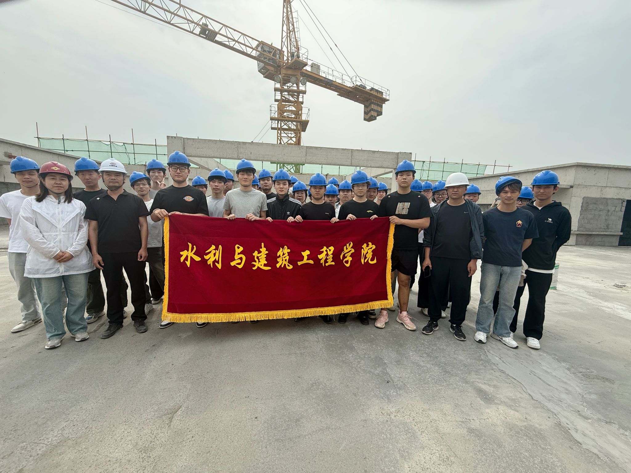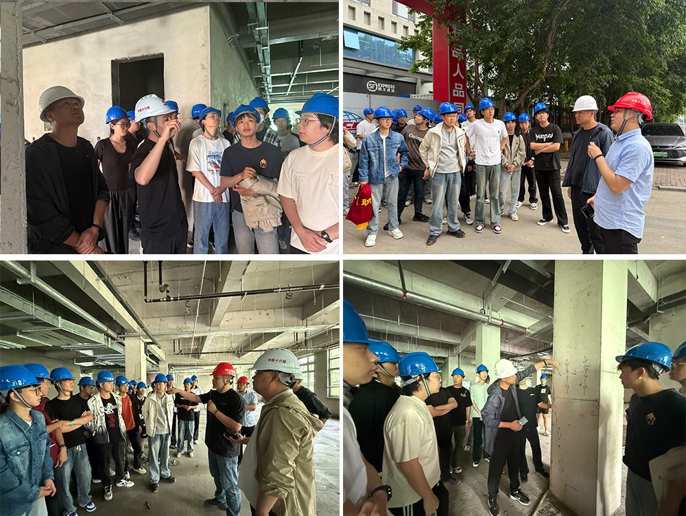 施工现场,机械轰鸣与钢筋碰撞声交织,实践教学在繁忙中有序开展。同学们了解建筑物定位、放线各环节,熟悉建筑物高程精准测设到实地的流程,明白每一个点位的确定都关乎建筑后续施工的走向;在主体结构施工过程中,掌握变形监测的关键,抗震阻尼器的安装等。