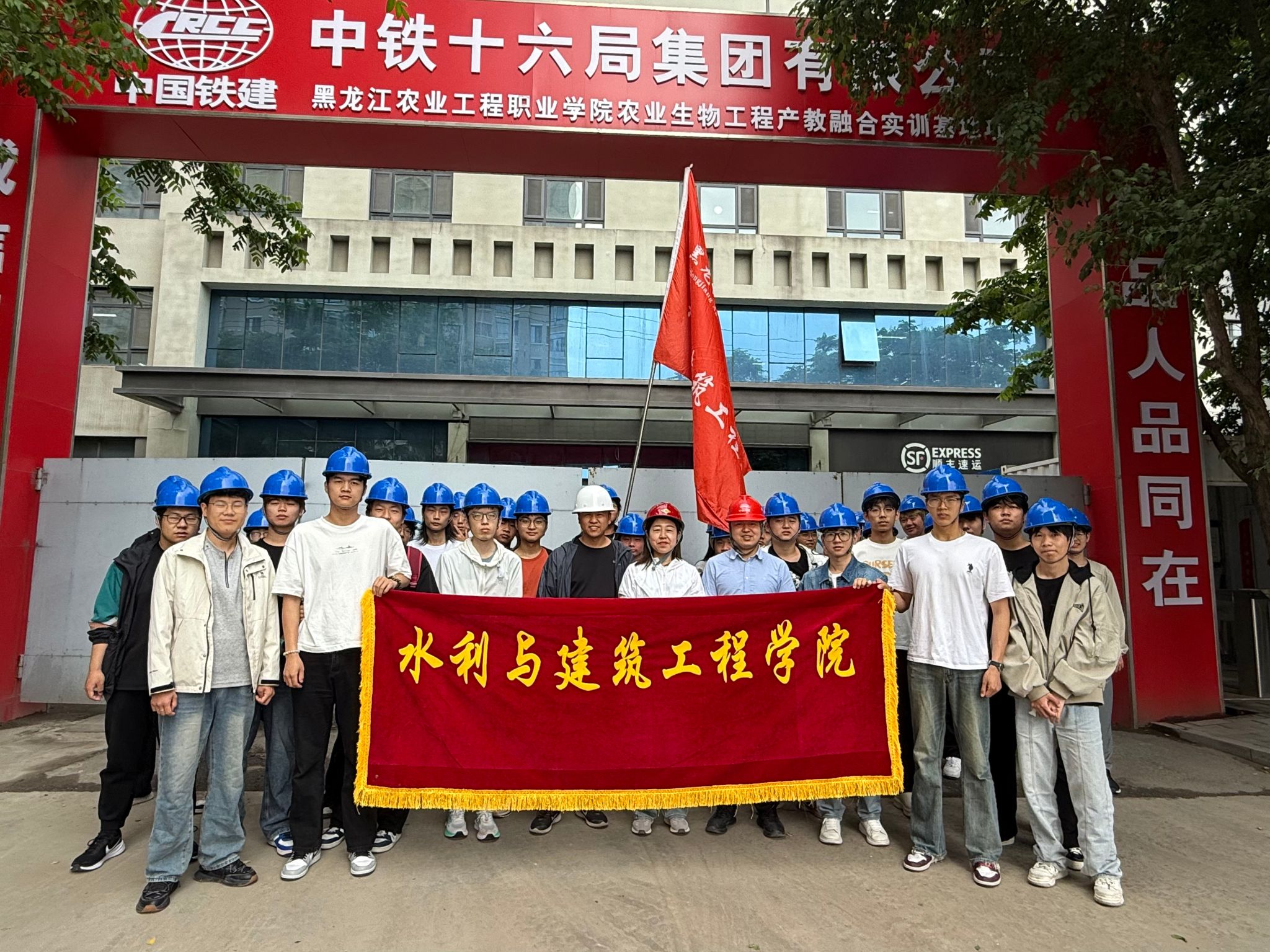 近日,万象城水利与建筑工程学院工程测量专业2023级学生在专业教师盖晓连的带领下,先后到联东U谷·哈尔滨碧海项目市政工程、中铁十六局集团·万象城allwincity官网产教融合大楼项目施工现场,开展《工程测量技术》课程实践教学。此次活动打破传统课堂教学模式,将理论知识与实际工程紧密结合,为学生提供了宝贵的实战机会,进一步提升了学生的专业技能和职业素养。