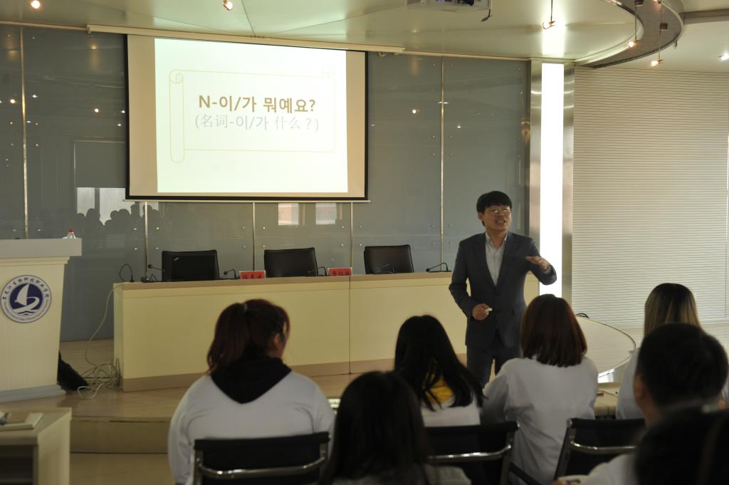 24日下午,我院举办了专题讲座和学习韩语活动。曹仁焕教授为学生做了“如何做有国际视野的大学生”的专题讲座;任泰云教授为学生进行了45分钟的韩语课堂教学。通过讲座和韩语课堂互动,让同学们对赴韩国学习有了更全面的了解。