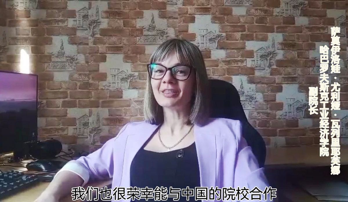 会上,哈巴罗夫斯克工业经济学院副院长瓦列里耶芙娜代表俄方主办校发来视频致辞,表示很荣幸与中国院校开展合作,期望未来双方院校在教育教学上进行更多的交流与深入合作。