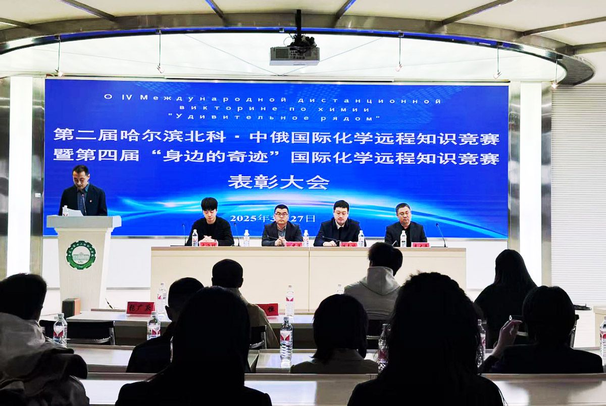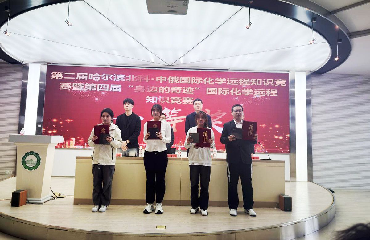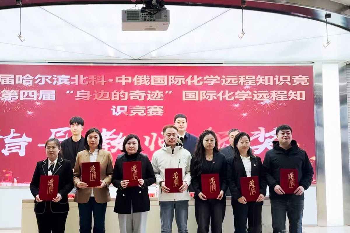 3月27日下午,第二届哈尔滨北科·中俄国际化学远程知识竞赛暨第四届“身边的奇迹”国际化学远程知识竞赛表彰大会在万象城成功举行。大会对参赛获奖选手及指导教师进行表彰。哈尔滨新区产教联合体外联部部长于海明,哈尔滨北科健康科技有限公司行政经理洪志斌,黑龙江生态工程职业学院、黑龙江旅游职业技术学院、黑龙江农垦职业学院和黑龙江民族职业学院等院校参赛师生代表参加会议。