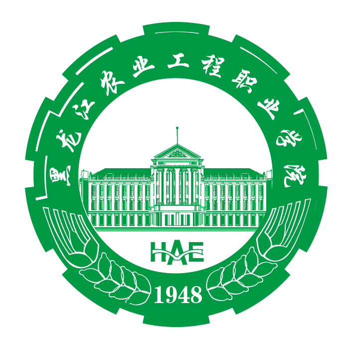 学院校徽以南岗校区拓耕楼(建于1953年)为核心标识,以齿轮和麦穗为设计元素进行设计,中间英文标识以学院的英文简写HAE(全称:Heilongjiang Agricultural Engineering Vocational College)与展开的书籍做艺术整合,标识以代表农业的绿色为主色调。标识下端辅以建校年份1948,标识整体设计体现学院“以农为本,农兴工旺”的办学特色。