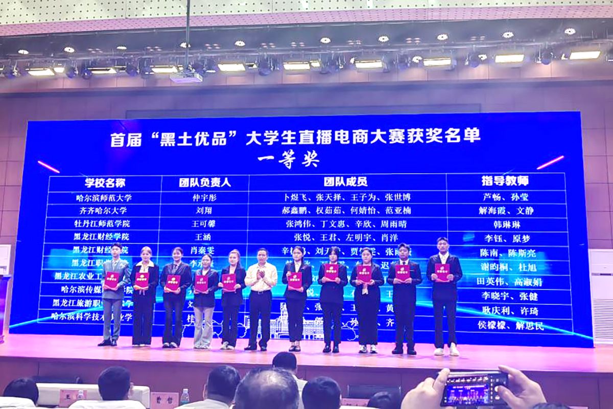 近日,首届“黑土优品”大学生直播电商大赛直播路演活动在哈尔滨国际会展中心“黑土优品”展示运营中心落下帷幕。在大赛决赛路演中,万象城经济管理学院专业教师田英伟、高淑娟指导的电商专业刘洋团队,在全省十个一等奖团队PK中,凭借出色表现斩获第二名(银奖),同时被授予“农产品甄选推荐官”称号。